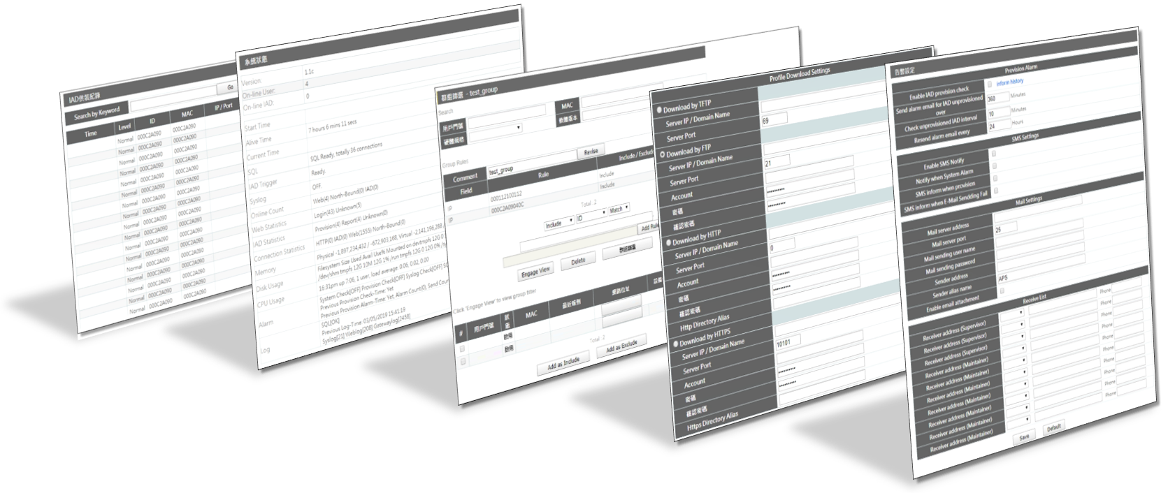 ● 管理 - 設定 Device 各項參數,管理個別、群組、Profile、Image、API。